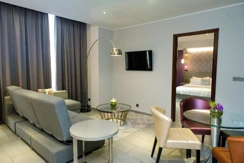 Featuring a private entrance, this air-conditioned suite consists of 1 living room, 1 separate bedroom and 1 bathroom with a walk-in shower and a bath. In the kitchenette, guests will find a stovetop, a refrigerator, kitchenware and a microwave. The suite provides a minibar, a tea and coffee maker, a seating area, a dining area and a flat-screen TV. The unit offers 2 beds.