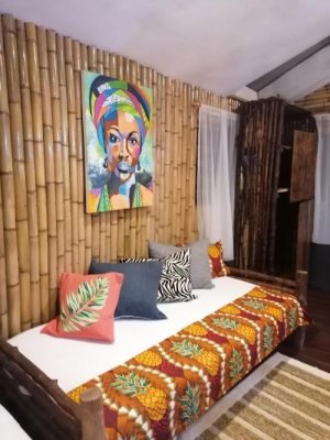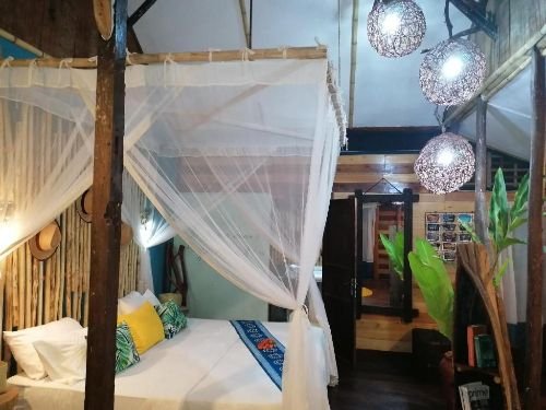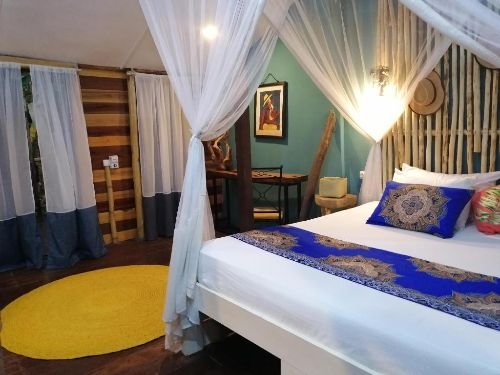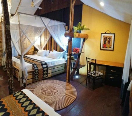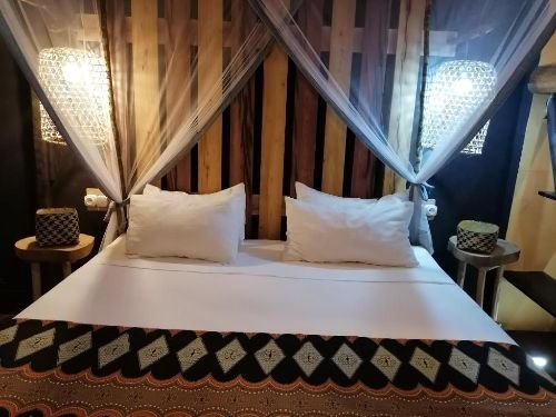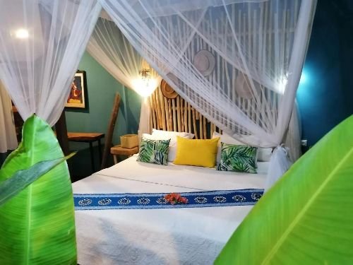 Décorées dans des couleurs chaudes, toutes les chambres disposent d’un mobilier d’artisanat local et d’un lit à baldaquin drapé d’une moustiquaire. Certaines offrent une vue sur le jardin.