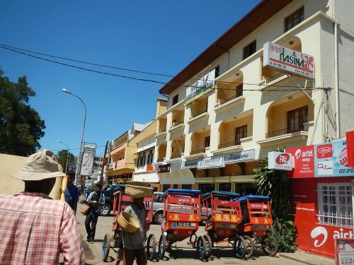 L’Hôtel Hasina est un établissement économique situé en plein centre-ville d’Antsirabe, entre le marché, la cathédrale et la gare. Il propose 34 chambres adaptées à différents besoins, avec salle de bain privative, eau chaude, télévision satellite et Wi-Fi gratuit. Certaines chambres, en particulier celles orientées vers la cour, offrent un cadre calme et confortable avec une décoration boisée. L’hôtel dispose aussi d’un parking intérieur gratuit, d’une salle de réunion et d’un service de petit-déjeuner, assurant un bon rapport qualité-prix.