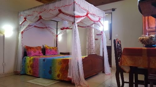 Le Motel Au Petit Vatel est un Ă©tablissement paisible situĂ© dans un quartier calme de Diego-Suarez. Il propose cinq chambres dâhĂŽtes confortables Ă lâĂ©tage, Ă©quipĂ©es de lit double avec moustiquaire, douche chaude, petit rĂ©frigĂ©rateur, tĂ©lĂ©vision et Wi-Fi. Certaines chambres disposent dâune kitchenette ou dâune terrasse, et lâensemble se trouve dans un cadre verdoyant et bien entretenu. Les clients peuvent profiter de services tels que le petit-dĂ©jeuner, le dĂźner familial sur rĂ©servation, et des transferts vers lâaĂ©roport.