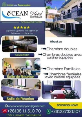 Ocean Appart Hotel est un établissement haut de gamme proposant des chambres familiales luxueuses, de nombreuses chambres doubles avec cuisine équipée, ainsi que plusieurs chambres familiales disposant d’une cuisine. L’hôtel comprend également une salle de réunion.