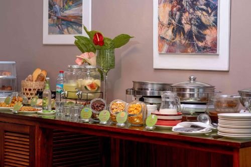 Le restaurant sert une cuisine locale et française. Le bar de l’hôtel est muni de canapés et donne sur le jardin. Vous pourrez y déguster des boissons, des cocktails et des collations.